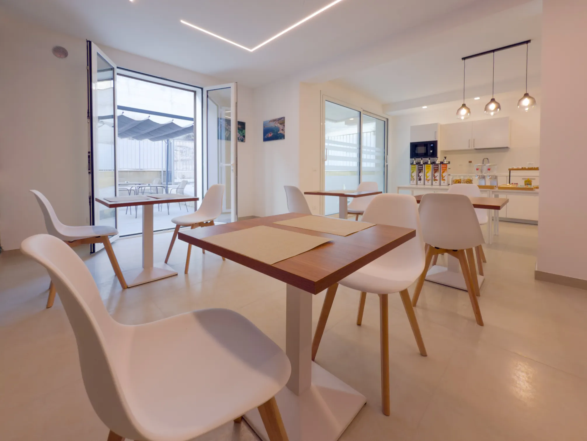 L’ampia sala colazioni è perfetta per iniziare la giornata in tranquillità, con la possibilità di accomodarti anche all’aperto in uno spazio dedicato esterno.